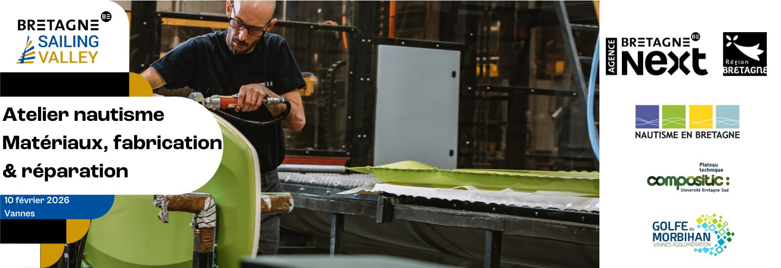 Pour accompagner les centres nautiques dans le choix de matériel et dans la gestion de leurs supports nautiques en fin de vie, l’agence Bretagne Next et ses partenaires Nautisme en Bretagne, Compositic, Audélor et Vannes Agglomération, proposent en 2026 une série de 3 ateliers sur le sujet des matériaux et de la réparation.