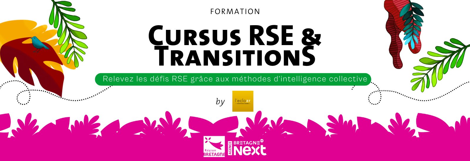 Le Cursus RSE & TransitionS propose une approche inédite et innovante de la RSE, en alliant facilitation, intelligence collective, créativité et enjeux du développement durable. Durant 5 jours, répartis entre mars et juin, les participants seront formés aux enjeux de la RSE, combinés aux méthodes de transformation des entreprises et des organisations.